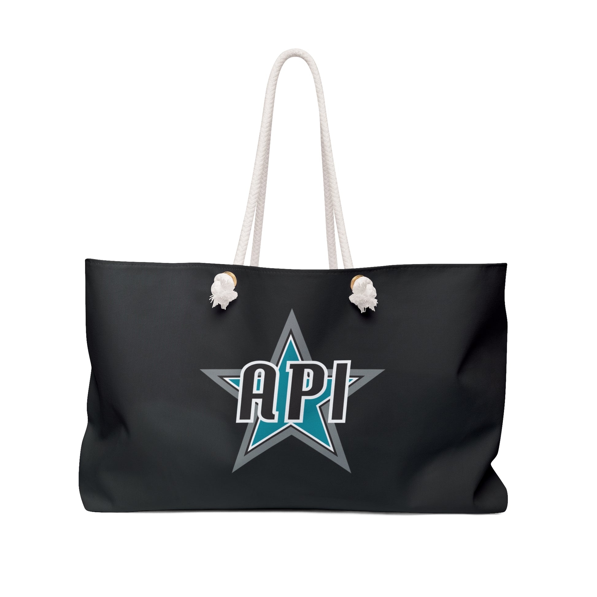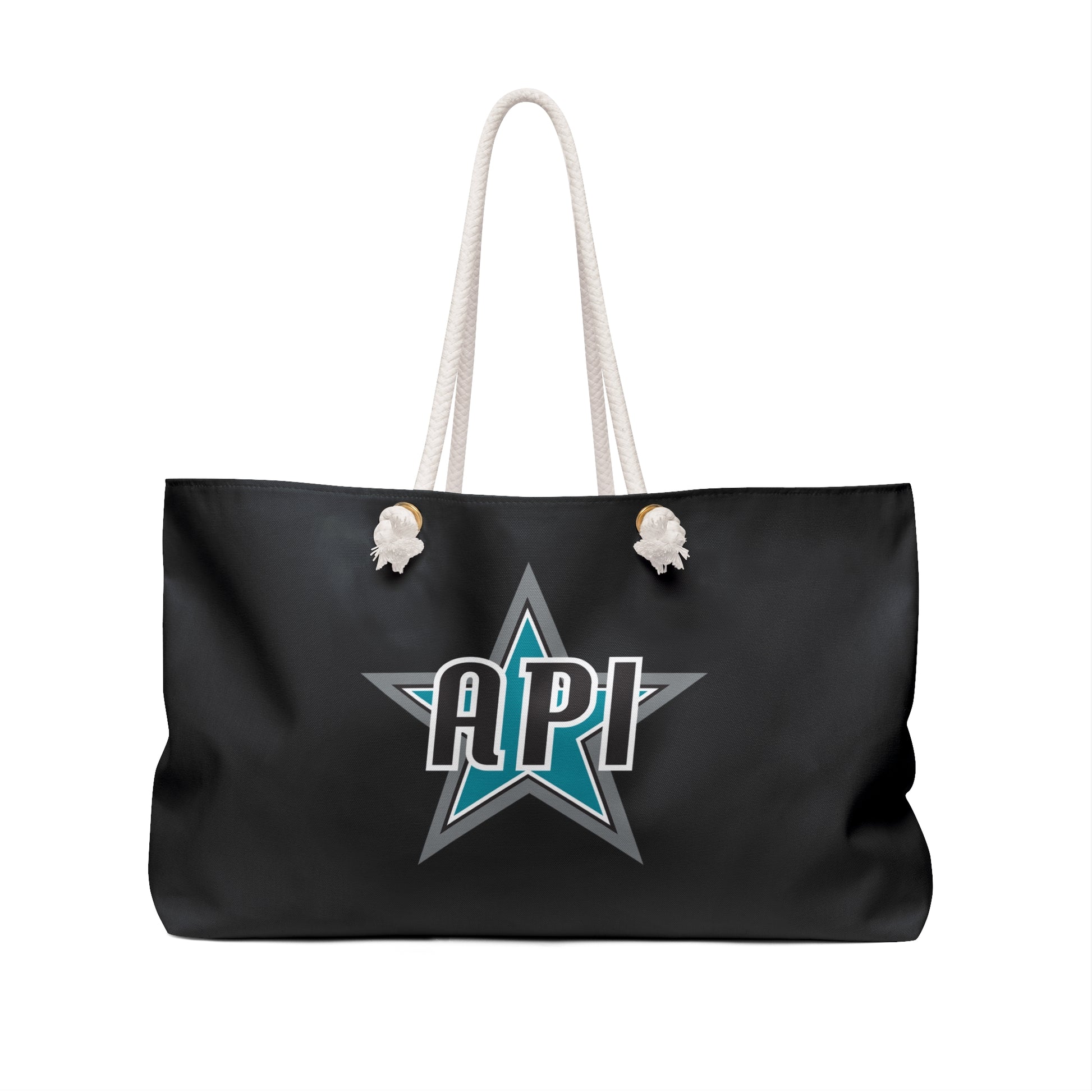 Our oversized Weekender Tote is perfect for your weekend at the beach or in town. The wide-mouthed, durable bag holds a generous amount of personal items and is easily held by its thick rope handles.